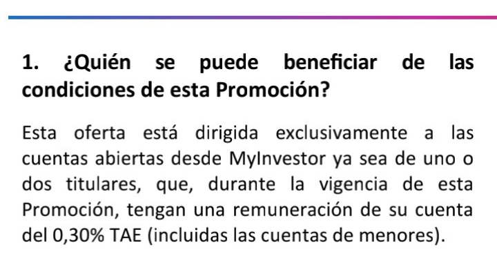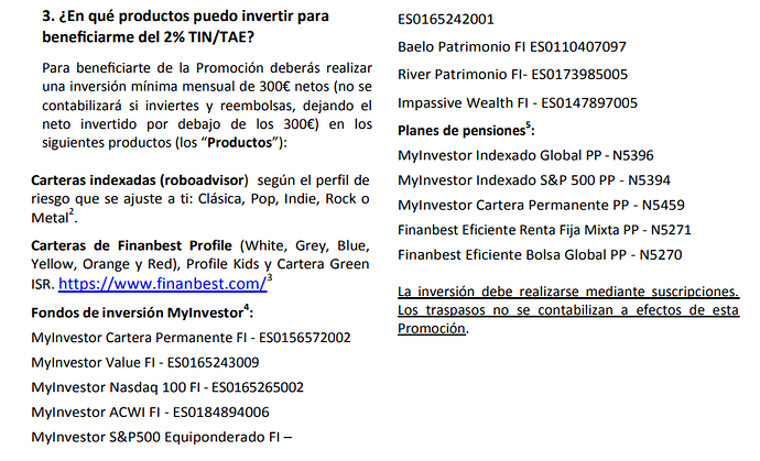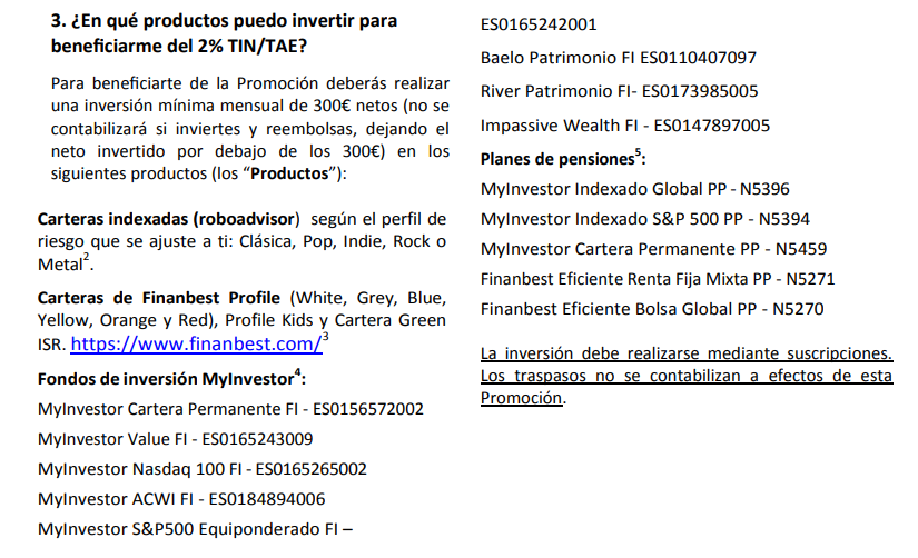 Referente a My investor, para clientes con más de 1 año de antigüedad y que lleven dinero para beneficiarse del 2%:
